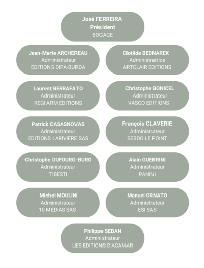 Ce Conseil est constitué d'Administrateurs, éditeurs, dont un Président élu par ses pairs.
